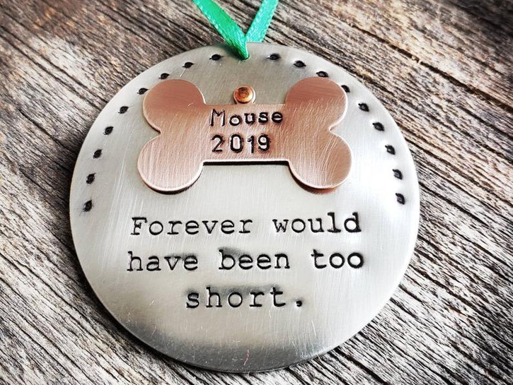 Place this heartwarming Christmas ornament on your tree this year to commemorate your pet. They may not be curled up under your tree, but they’re with you forever in your heart.