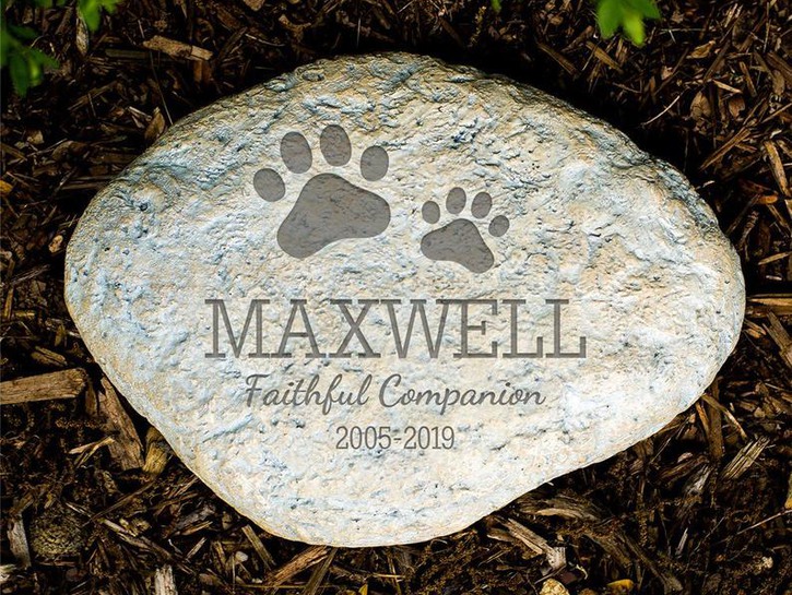 This pet memorial stone is a beautiful way to memorialize your companion. Place the durable waterproof resin stone in your garden or inside your home as a reminder of your family pet. Personalize the memorial stone with your pet’s name, a custom message, and memorial years.
