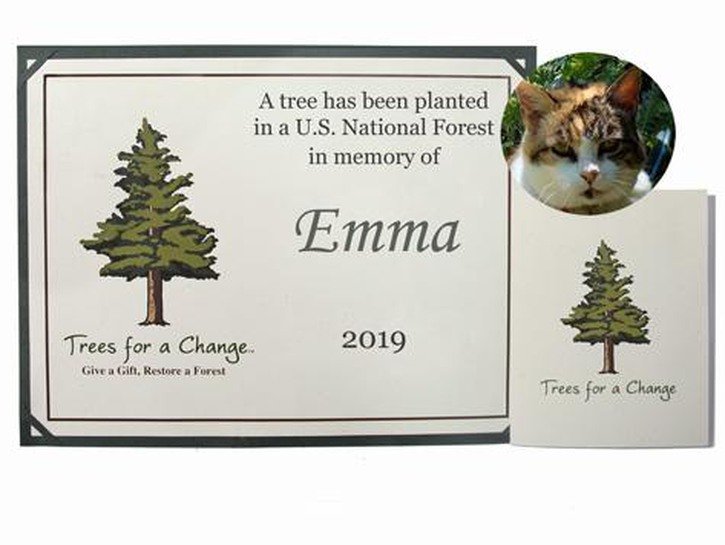 Plant a tree in memory of a beloved pet. Your tree dedication will be forged forever with your pet’s name through a national registry where you will have access to photos about the location of the tree online. Your pet’s tree will have been an integral part of restoring a forest that had been destroyed by fire.
