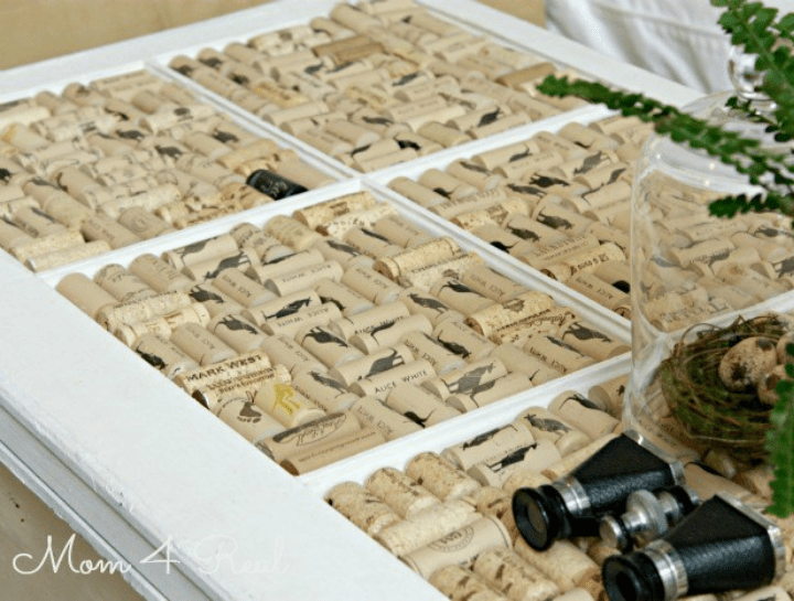 Using an old window frame and that dusty collection of corks sitting in your drawer, you can make a durable and unique coffee table topper that will extend the life of your furniture and provide a splash of bohemian texture to your living room. If you’re more into champagne and have a growing collection of bulbous corks, try making a funky rounded table topper with this YouTube tutorial by Guidecentral.