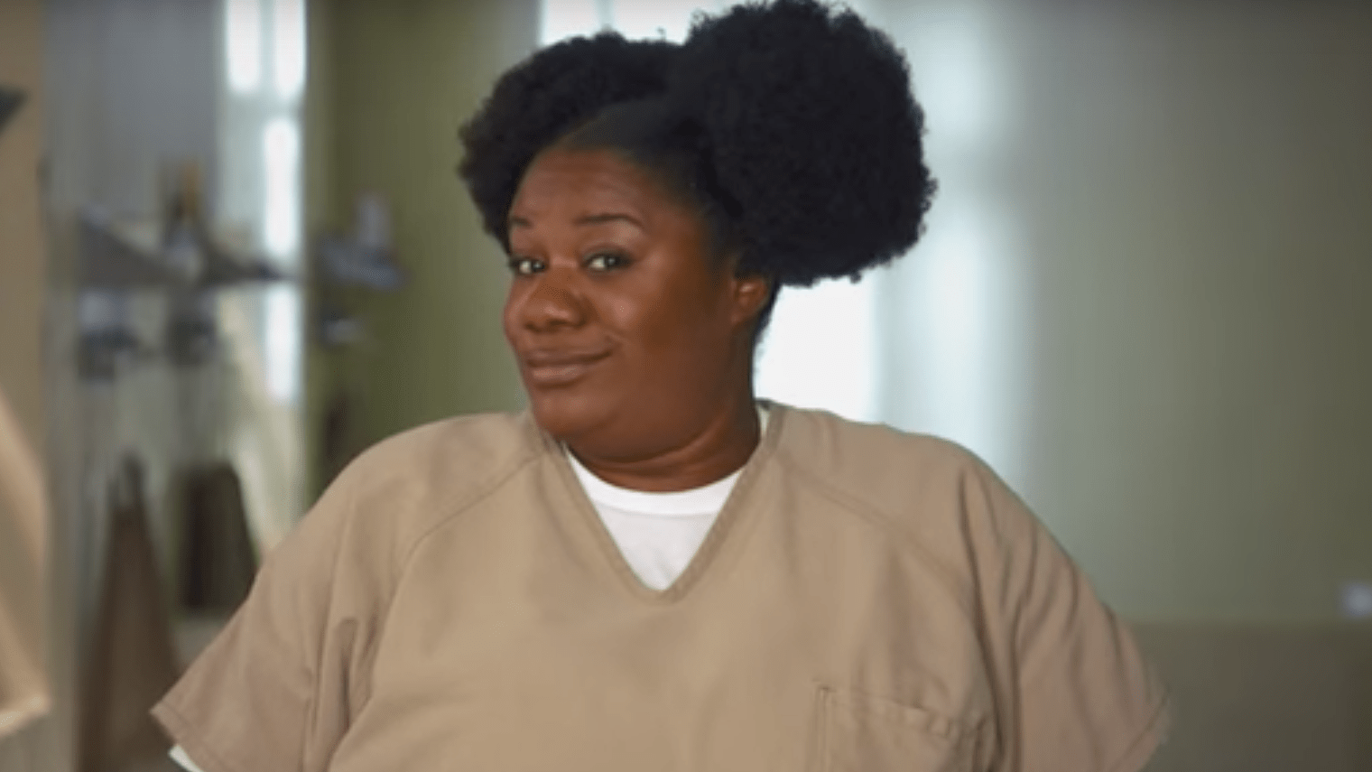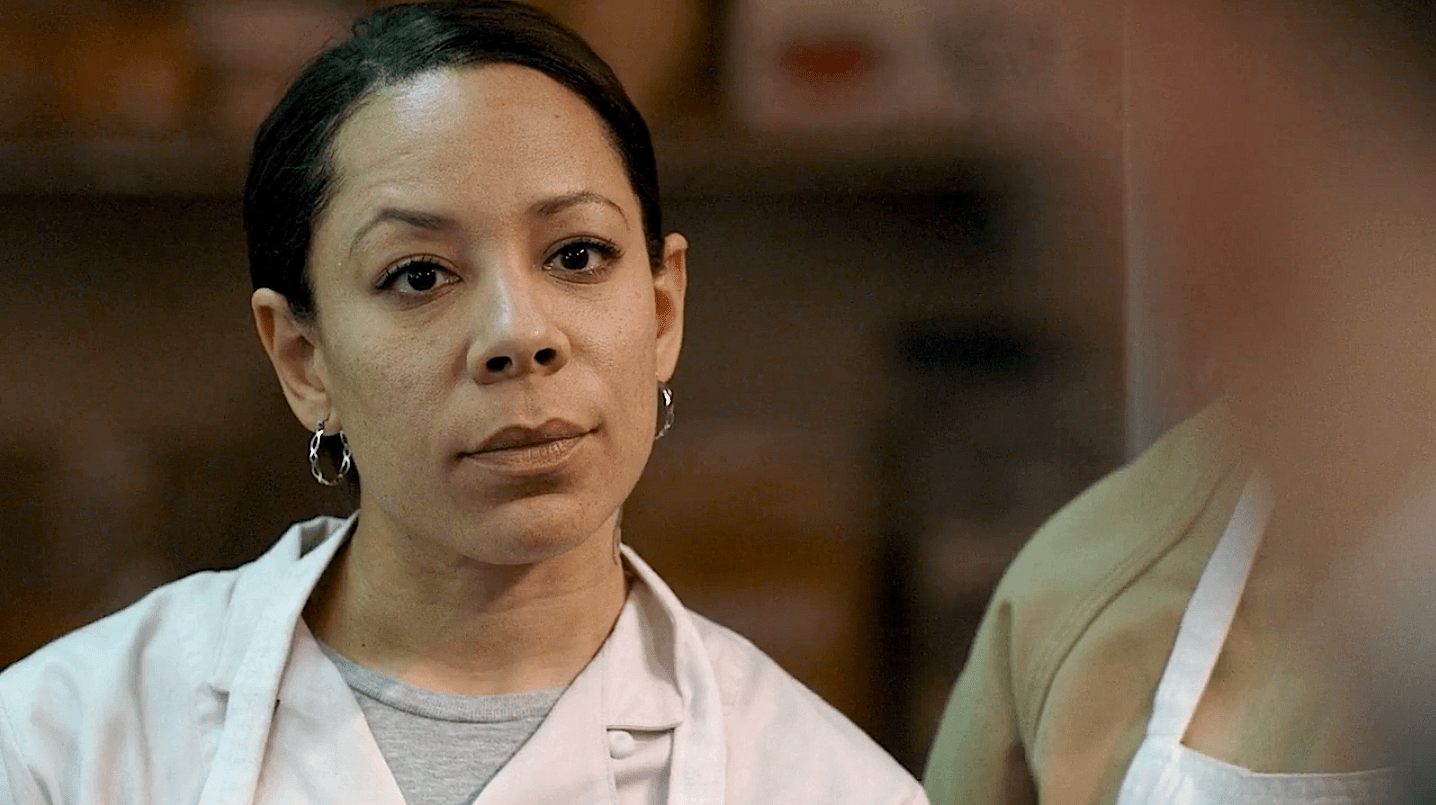 Dubbed “Black Cindy” because there is another Cindy at Litchfield who is white, Cindy Hayes is funny, playful, and sly. While her exact offense is not made clear, we do learn that she used to work as an airport security agent and frequently stole from passengers’ luggage. We also find out Cindy (who’s played by Adrienne C. Moore) had a baby when she was 16, named Monica, whom her mother raised for her.